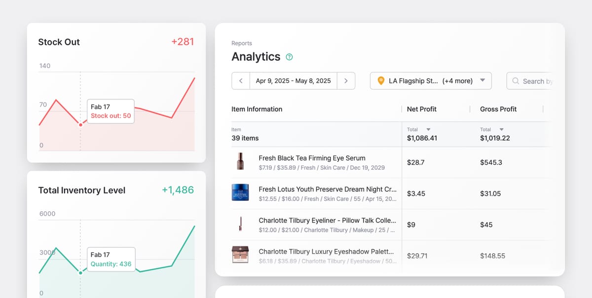 Total Stock Out Quantity ÷ Average Quantity in a PeriodThis number helps you figure out how fast your items are moving and whether you might need to adjust your stock levels.