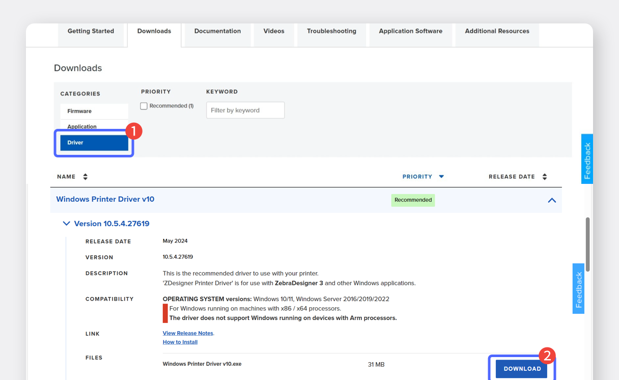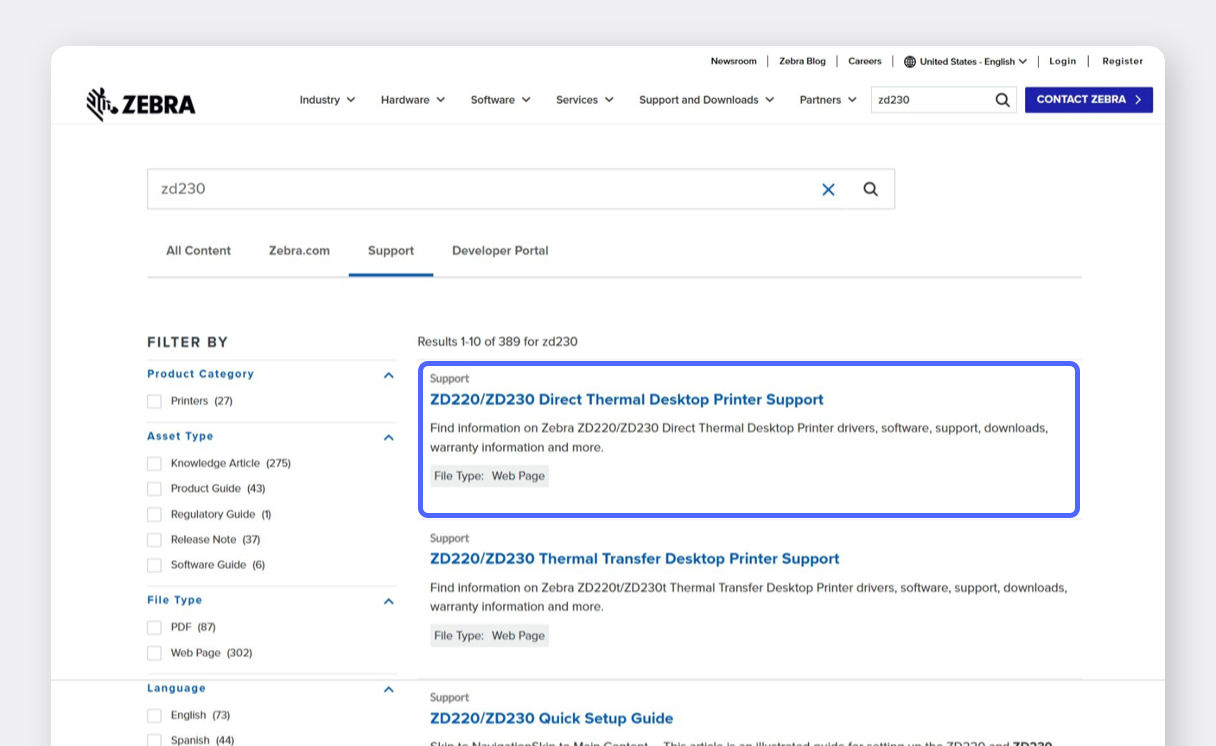ZEBRA [e scarica il driver.](https://www.zebra.com/us/en/support-downloads.html) Esegui il file del driver per iniziare l'installazione.