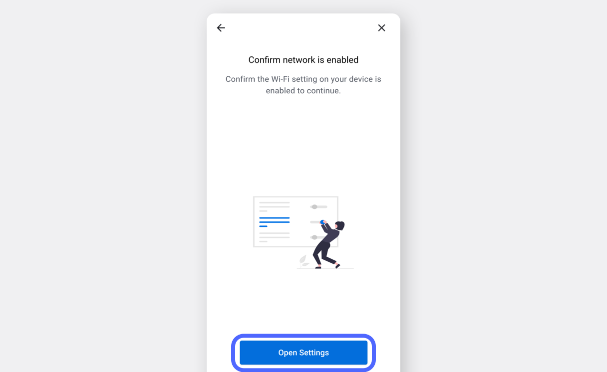Tocca **`Apri impostazioni`** e seleziona la tua rete Wi-Fi.\