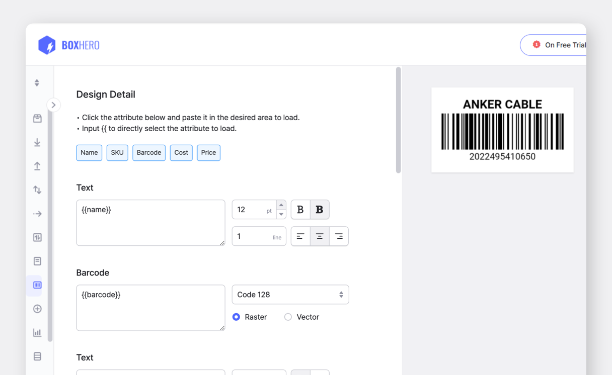 qui [Apri l'app](https://docs-en.boxhero.io/features/print-barcode#customize-your-barcode-design).