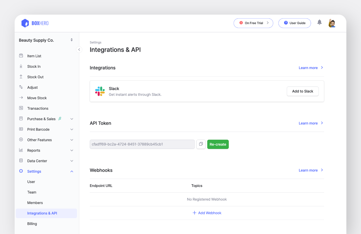 ## BoxHero を Slack に接続する