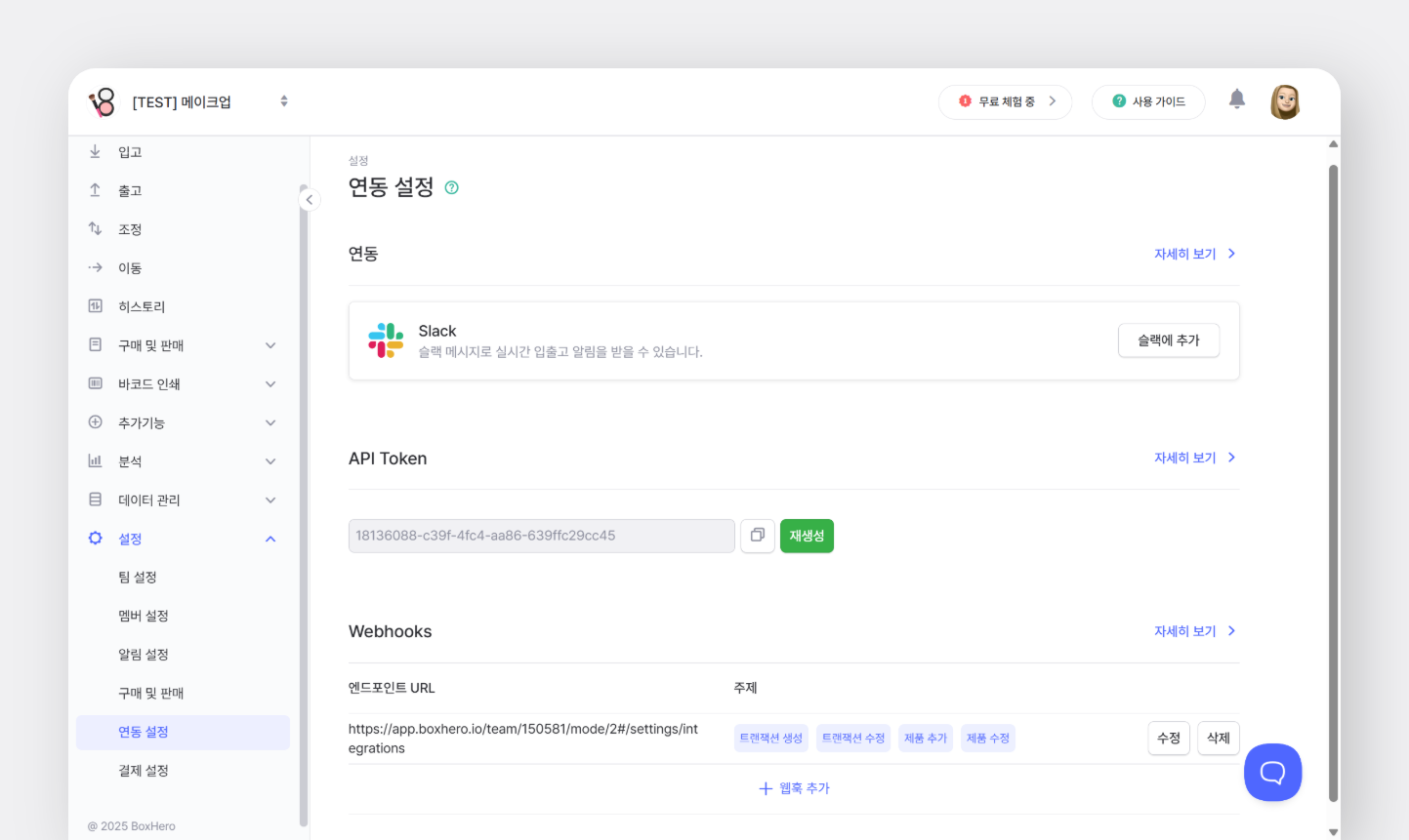 [webhook](https://www.boxhero.io/docs/documentation/ko/etc/settings/integrations/webhook)