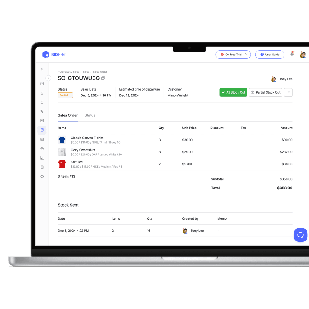 BoxHero provides all the necessary tools for managing your inventory without having to upgrade to premium tiers. There are no hidden costs for key features like multi-location management, barcode scanning, or purchase & sales tracking, making it a cost-effective solution.