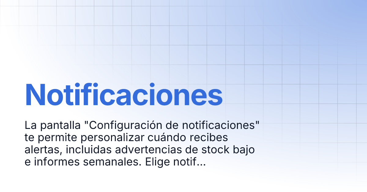 Las grandes empresas cuentan con personal que monitorea el inventario a tiempo completo, pero las pequeñas empresas no tienen ese lujo. La configuración de notificaciones cubre esa brecha al vigilar continuamente los niveles de stock y poner en primer plano los cambios que requieren atención.