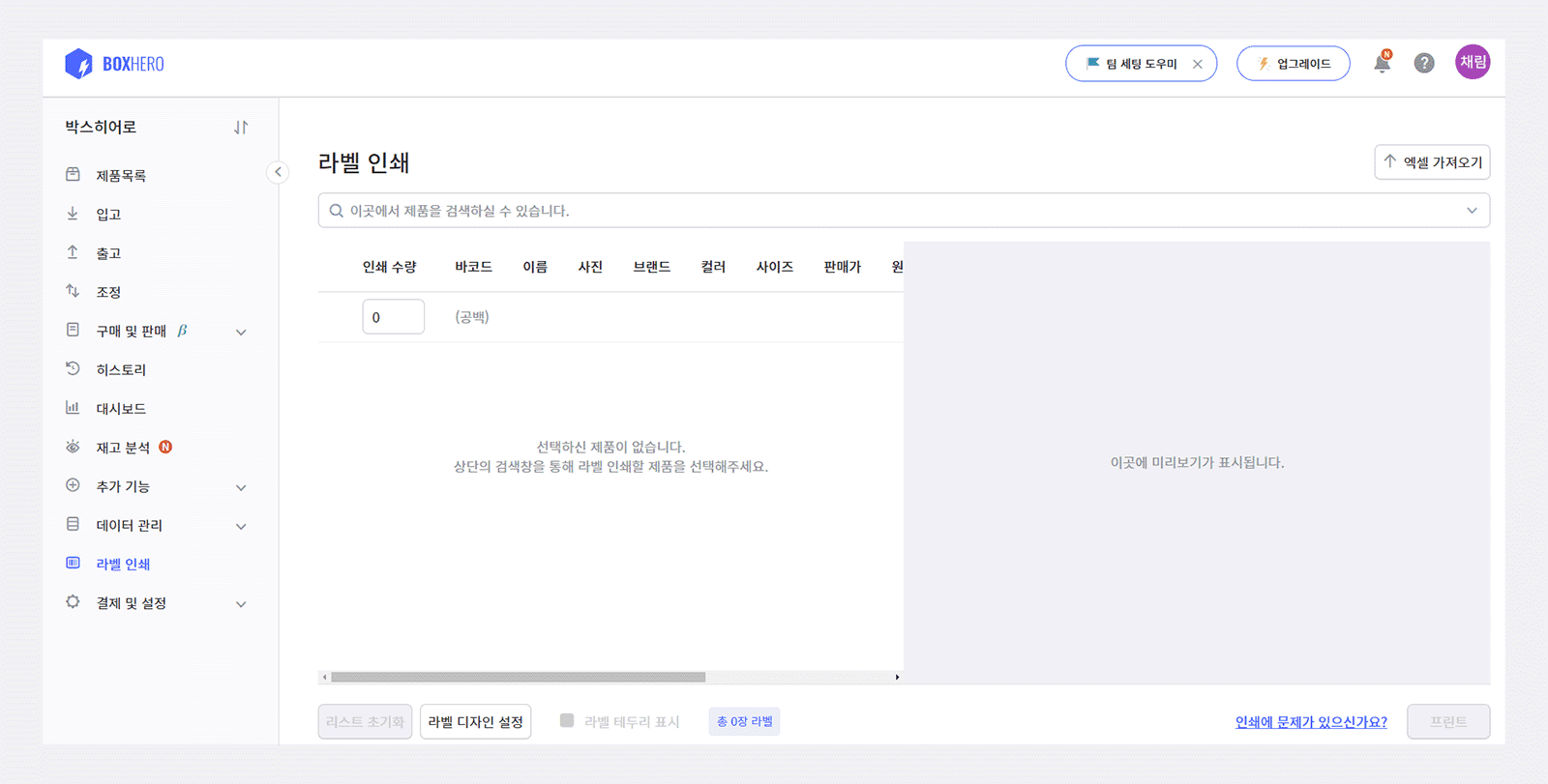 박스히어로에서는 바코드 생성 뿐만 아니라 생성한 바코드에 따른 라벨 디자인과 출력까지 할 수 있습니다.