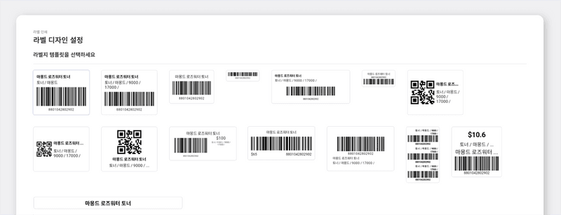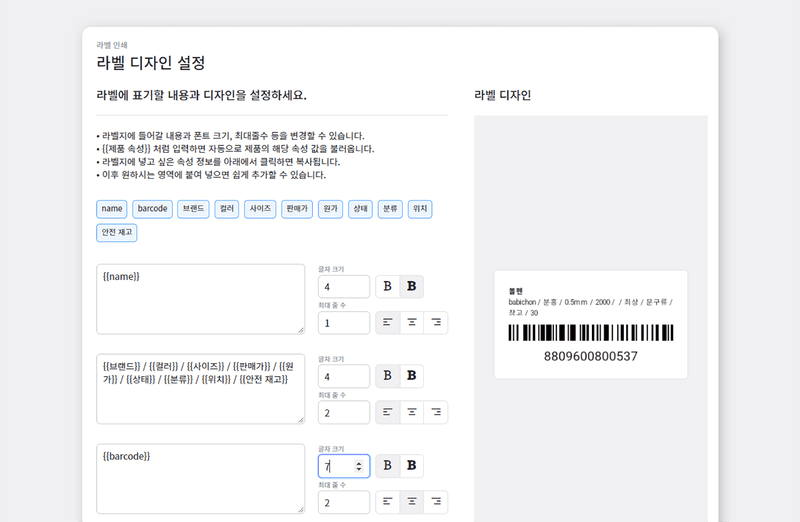 - 라벨지에 원하는 제품 속성을 기입할 수 있습니다.