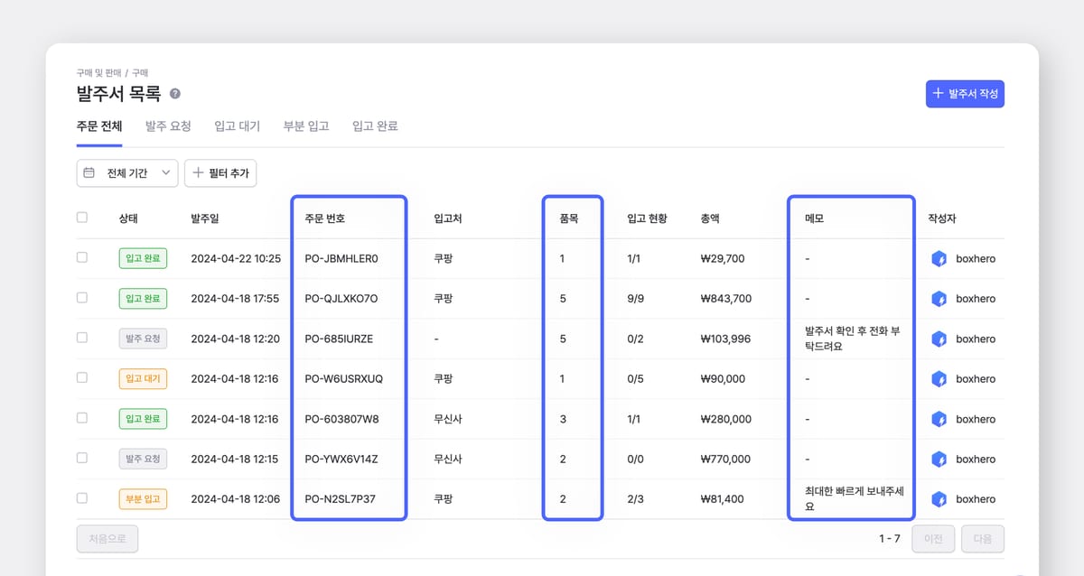 구매 및 판매 기능의 자세한 내용은 박스히어로 공식 웹사이트의 사용자 가이드를 참고해주세요. 업데이트에 대해 궁금한 부분이 있다면 언제든 고객센터로 문의해 주세요. 감사합니다.😊