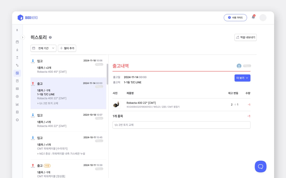 “비수불자재 관리의 필요성을 상부에 납득시키려고 노력했어요. 어떤 이유에서든지 자재가 부족하면 그건 생산팀의 관리가 미흡했던 거니까요. 재고 관리 솔루션을 도입하려고 당시에 정말 많은 툴을 사용해 봤는데요. 그중에서 박스히어로가 디자인도 제일 마음에 들었고, 사용성도 편리해 보였어요. 무료로 사용해 볼 수 있길래 우리 회사에 적합할지 적용해 보고 도입했어요.”