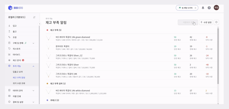 박스히어로 모바일에서 재고 부족 알림 설정하기