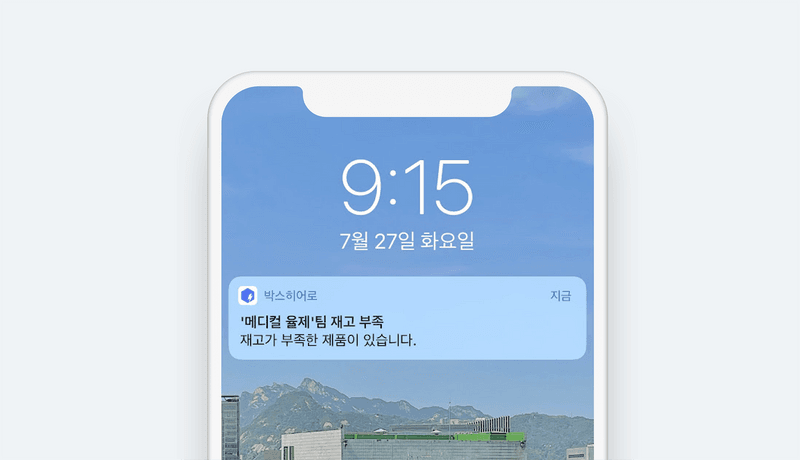 재고부족 알림을 받으시려면, 핸드폰에서 박스히어로 어플의 푸쉬 알람을 켜두셔야 해요!