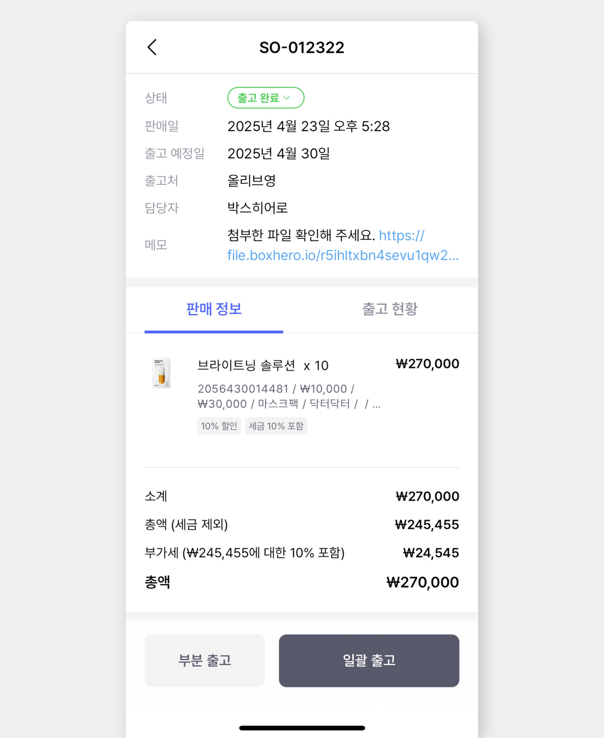 이제 박스히어로 모바일에서도 구매 및 판매 기능을 사용할 수 있습니다.
