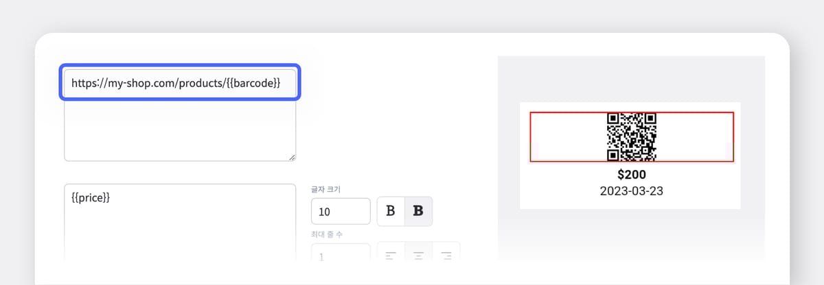 이전에는 라벨로 인쇄되는 바코드나 QR코드를 생성할 때 제품의 바코드 숫자 정보만 사용할 수 있었어요.
