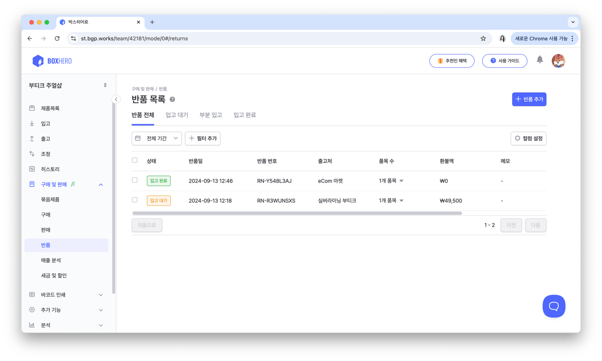 믿고 쓰는 1등 재고 관리 서비스 박스히어로입니다.